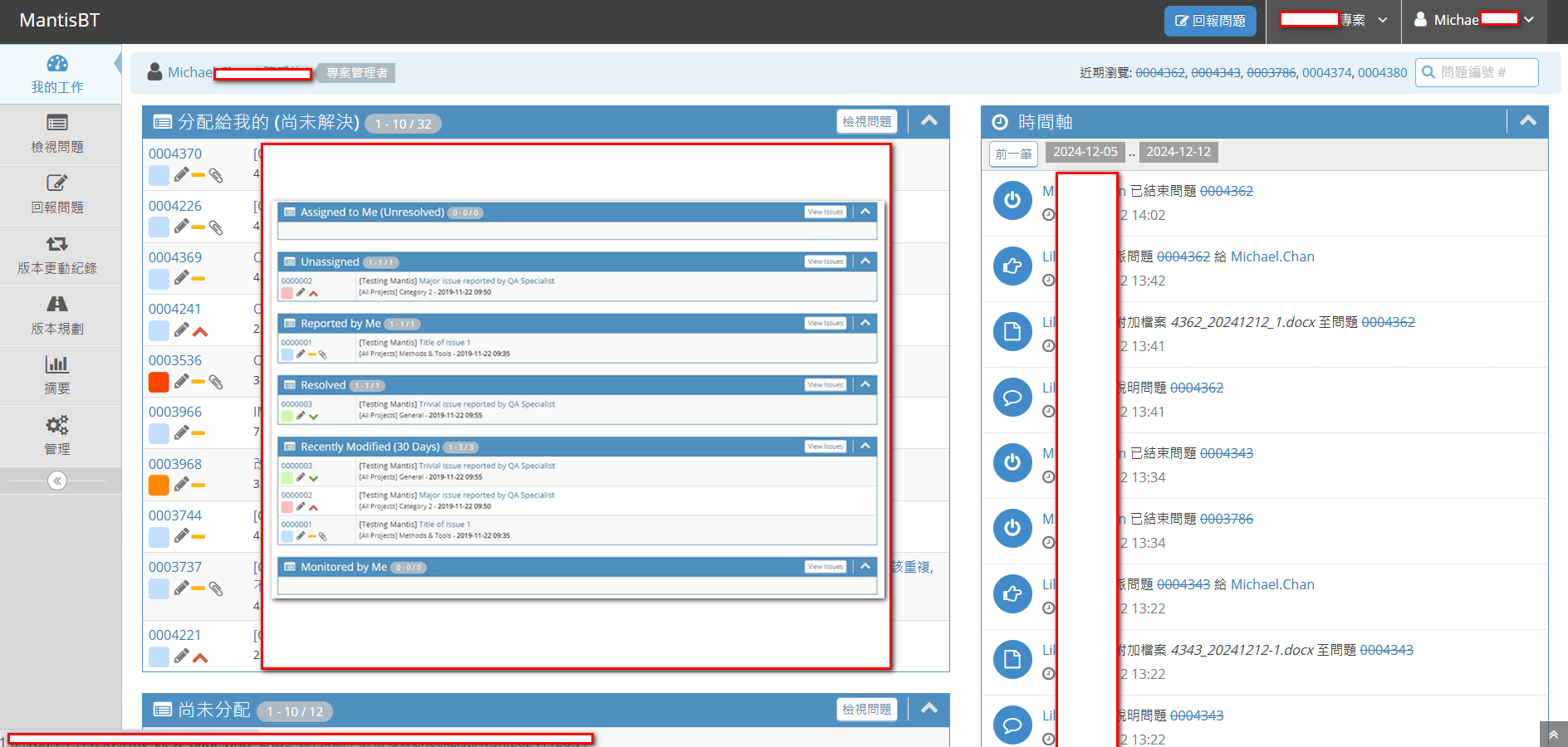 MantisBT 不僅是一款缺陷追蹤工具,還兼具基本的專案管理功能: